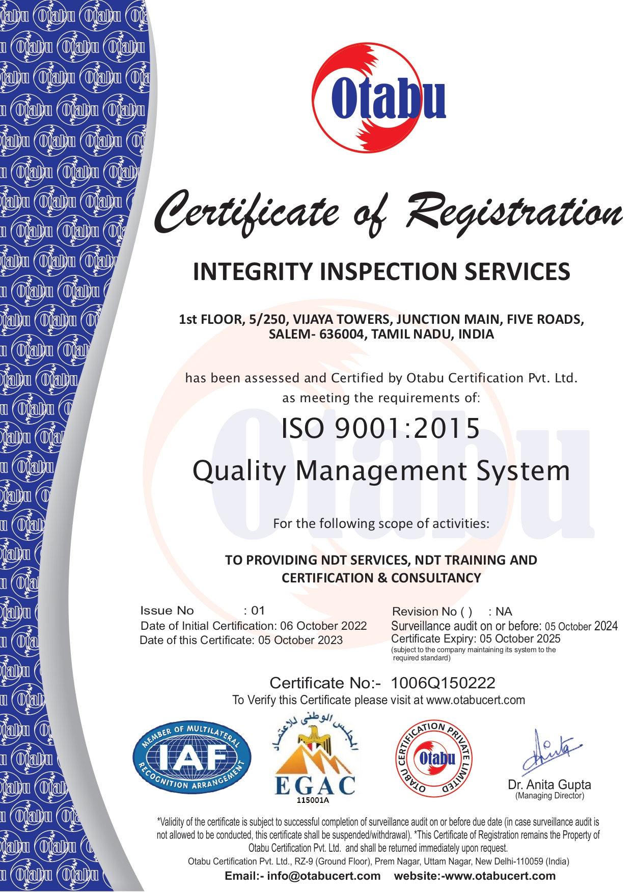 Projects CompletedCertificates of INTEGRITY INSPECTION SERVICES